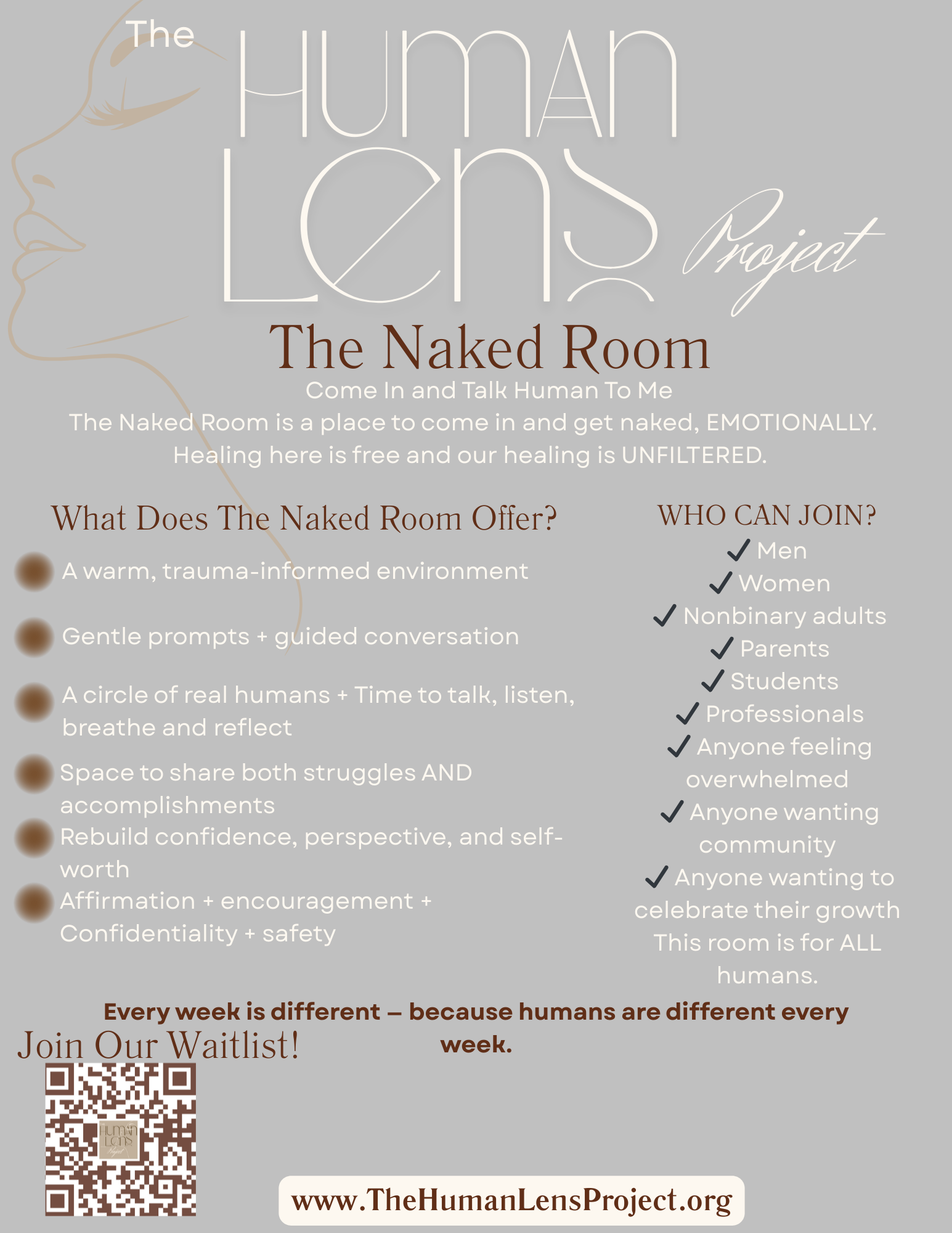 A space to unmask, unload, and reconnect with your humanity.
